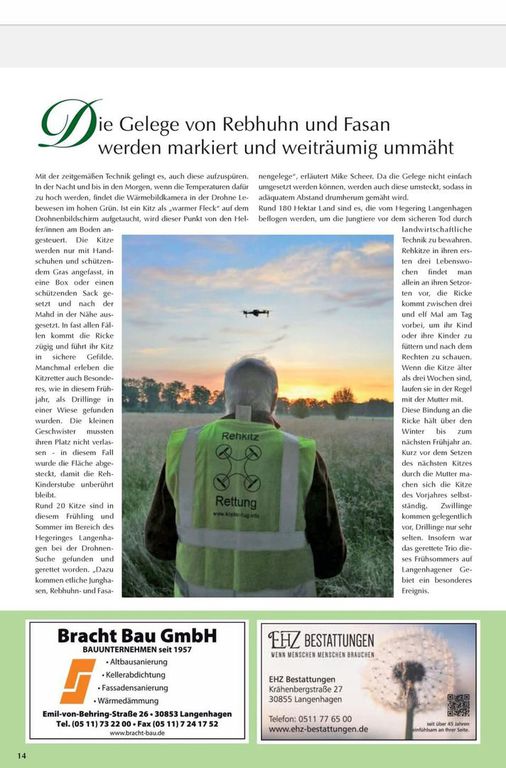 Der Hegering Langenhagen e.V. möchte daher darauf hinweisen, dass Sie als Katzen und Hundehalter einen großen Anteil an dem Erfolg der Jungtieraufzucht unserer Wildtiere haben und damit einen entscheidenden Beitrag für den Erhalt unserer Wildtiere leisten! Wir haben Verständnis dafür, dass es für viele Hundebesitzer eine regelrechte Tortur ist, Ihren Vierbeiner über mehrere Monate nur an der Leine führen zu müssen und sich aufgrund dessen viele über den Leinenzwang hinweg setzen und Ihren Hund wie gewohnt frei laufen lassen. Nutzen Sie daher die von der Stadt Langenhagen ausgewiesenen Flächen auf denen auch in der Brut- und Setzzeit Ihr Hund frei laufen darf, bzw. bleiben Sie bitte mit Ihrem angeleinten Hund auf den Wegen und sensibilisieren auch Sie andere Hundehalter in dieser für das Wild sehr empfindlichen Zeit. Vielen Dank!